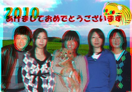 ネットにのせると家族写真のごく普通の年賀状になってしまいましたが、実際に送った年賀状の写真は3D画像となっています。